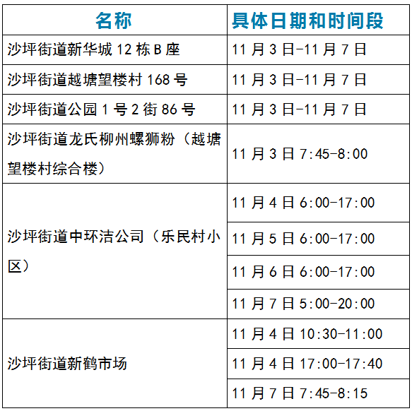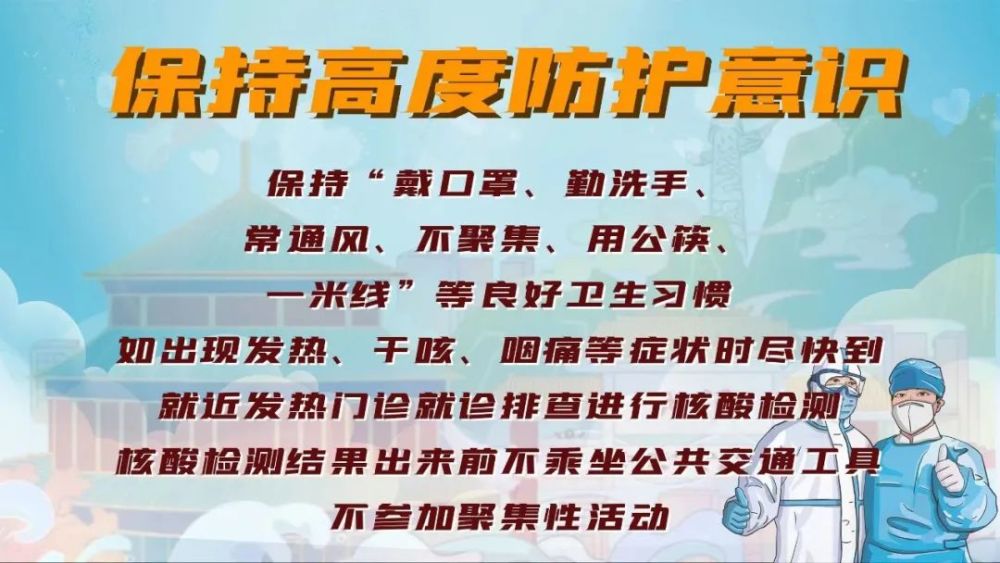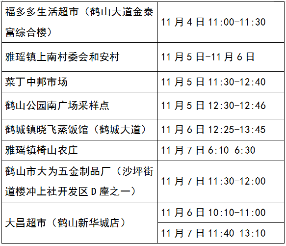 因疫情防控需要,请在相关时段到过以下场所的人员立即居家自我健康监测,非必要不外出,并向所在社区联系报备,等待上门核酸或者到就近的核酸检测点进行核酸检测,落实三天三检。请务必按照社区和疾控部门要求配合做好健康管理。