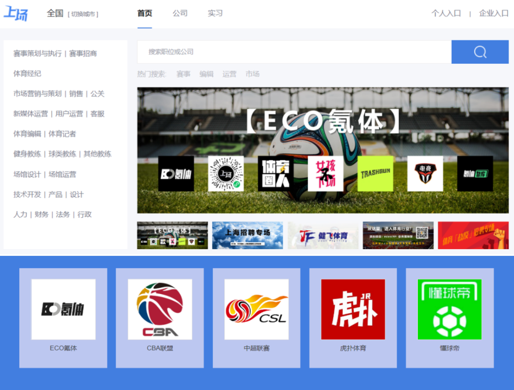 体育圈「上场」招聘是由ECO氪体独立研发,垂直于体育大健康领域的互联网招聘平台。自上线以来超过1300家公司发布岗位9000余个。目前已累计15万从业者简历,成功帮助优酷体育,环法中国赛,深圳网球公开赛等招募团队。