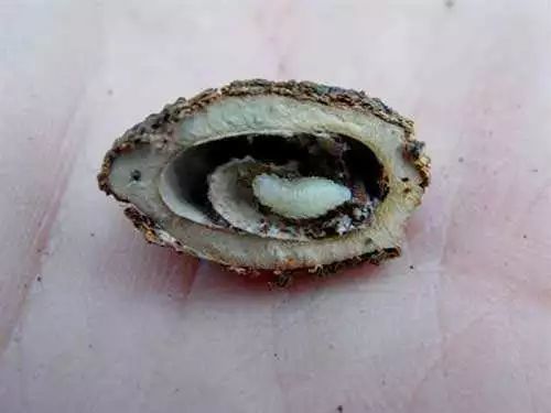 2)防治措施:彻底清园,秋季要彻底清扫杏园内的落杏、杏核,用竹竿彻底摘除树上未脱落的干杏,并集中烧毁,只要这一步做得彻底,可基本上消除次年杏仁蜂的危害,消灭越冬虫源。秋季结合杏园深翻,将落地杏核深埋在土中,可有效防止成虫羽化出土。用水选法淘汰被害杏核,因被害杏核较轻,入水后漂浮在水面上,可捞出集中烧毁或深埋。成虫羽化期喷洒45%丙溴·辛硫磷乳油1000倍液、40%啶虫·毒乳油1500~2000倍液、20%氰戊菊酯乳油1500倍液+5.7%甲维盐水分散粒剂2000倍液。落花后向树上喷洒2.5%氯氟氰菊酯乳油1500~2000倍液,每隔7~10天喷1次,共喷2次,消灭成虫,防止产卵。