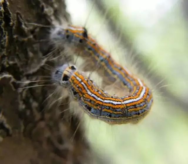 2)防治措施:冬剪时注意剪掉小枝上的卵块,集中烧毁。利用幼虫的假死性可振落捕杀。利用成虫的趋光性,可在杏园设置黑光灯捕杀防治。在幼虫发生期可喷2000~3000倍的菊酯类农药,如20%菊马乳油2000倍液、2.5%功夫乳油(或2.5%敌杀死乳油)3000倍液、10%天王星乳油4000倍液等。