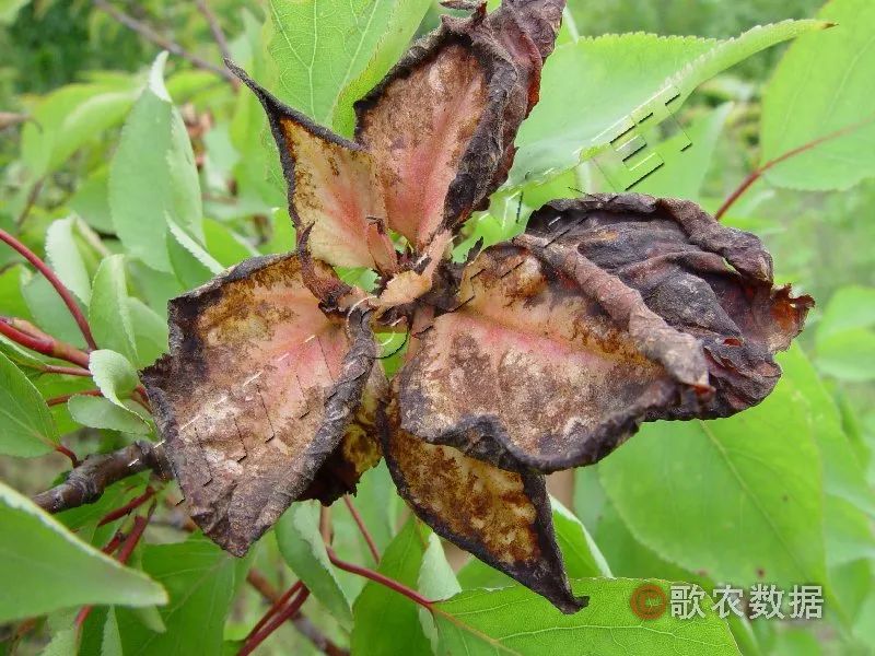 1)发生特点:该病主要为害叶片、新梢、花和果实。病菌以孢子囊在病叶中越冬,挂在树上的病叶是该病主要的初次侵染源。春季子囊孢子借助风雨或气流传播,遇到适宜的条件很快侵入。随着幼枝及新叶的生长,菌丝在组织内蔓延,5月呈现症状,到10月叶变黑,并在叶片背面产生子囊壳越冬。该病1年只发生1次,没有二次侵染。
