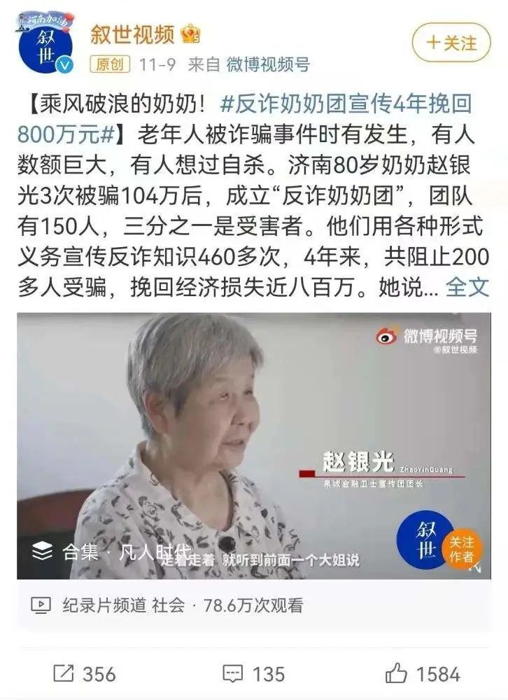 类似还有,被骗104万后,组团复仇的「反诈奶奶团」。
