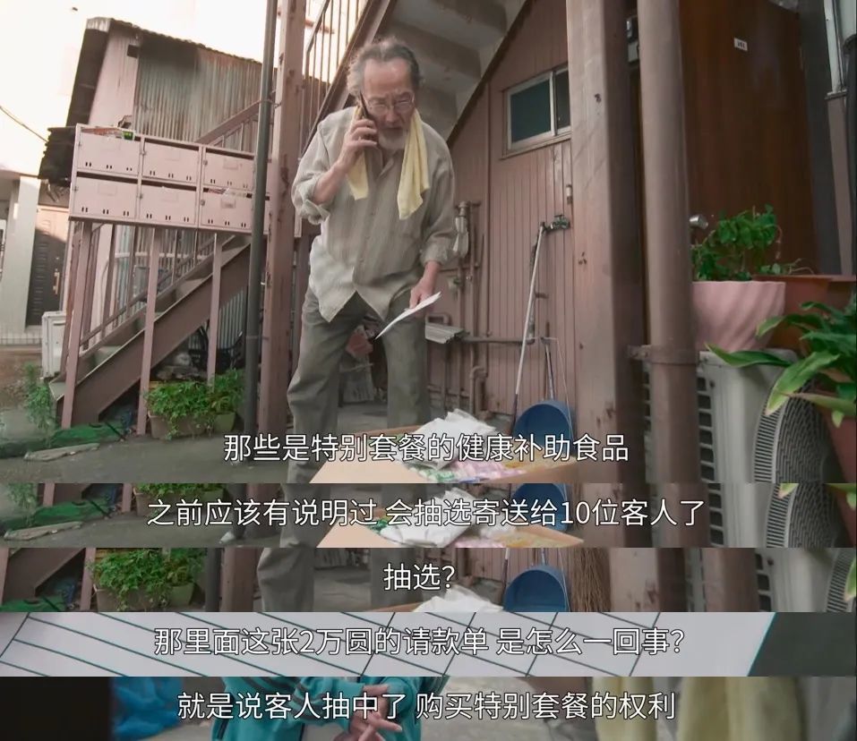 剧中,一个老人自己尝试网购时,被哄骗参与了抽奖活动。