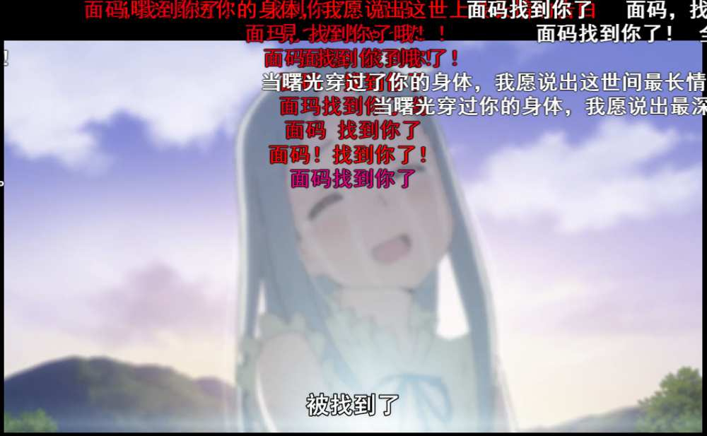 在那个夏天转瞬即逝的幽灵如花般绽放之后,面码的身形终于在心愿了结之后逐渐淡去。而在曙光穿透这个始终纯真的女孩胸口之时,曾经儿时的伙伴们齐声大喊的这一句“めんま!見付だ!”,面码带着哭腔却笑着回应的“見付けちゃだ”,直击心灵深处最柔软的地方。