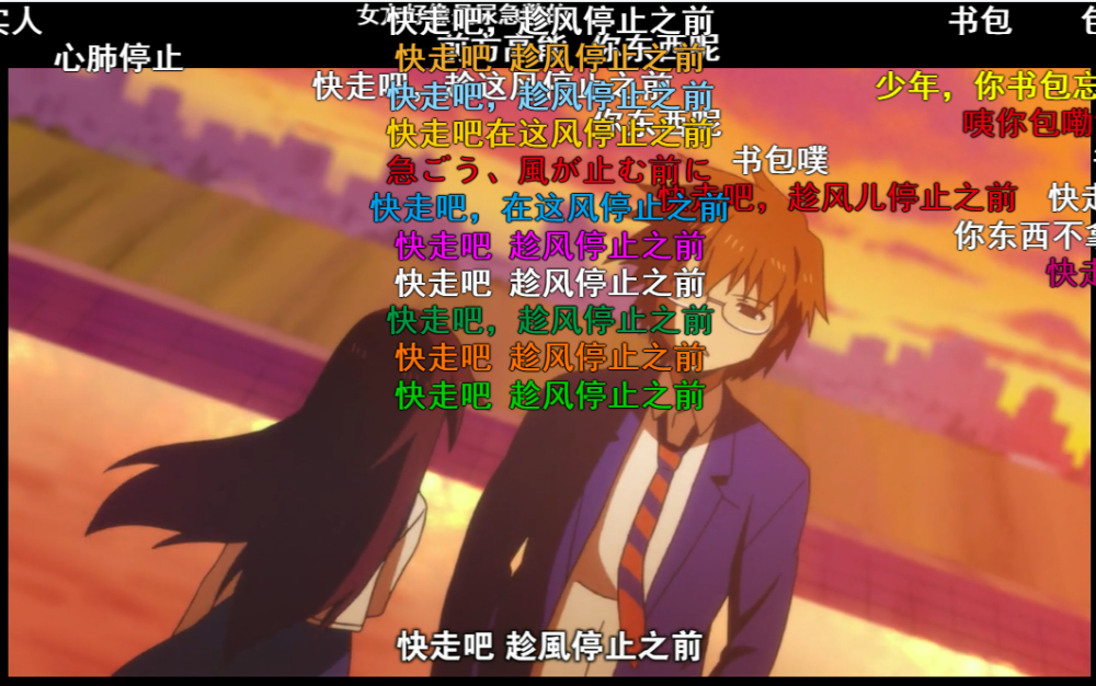 这句——不,应该说这段台词算是男高中最经典一段台词了。这段台词出自动画第一集的第三段《男子高校生与文学少女》,讲述了主角之一田畑秀则在夕阳余晖洒在的草坡上邂逅一位文学少女,明明十分紧张,却故作镇定并与其进行充满文艺与中二的对话,以及其后两位好基友前来帮倒忙的情形。其中还包含诸如“隔壁超市薯片半价啦!”等一些爆笑的台词出现。