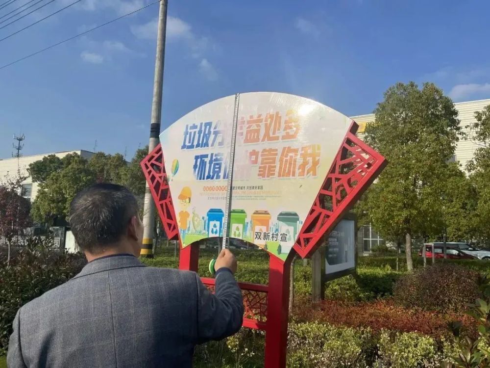 近日,双新村新时代文明实践站安排人员对村域内老旧褪色公益广告牌进行更换,此次更换公益广告40余处,有效提升了路边环境。(高钧益)