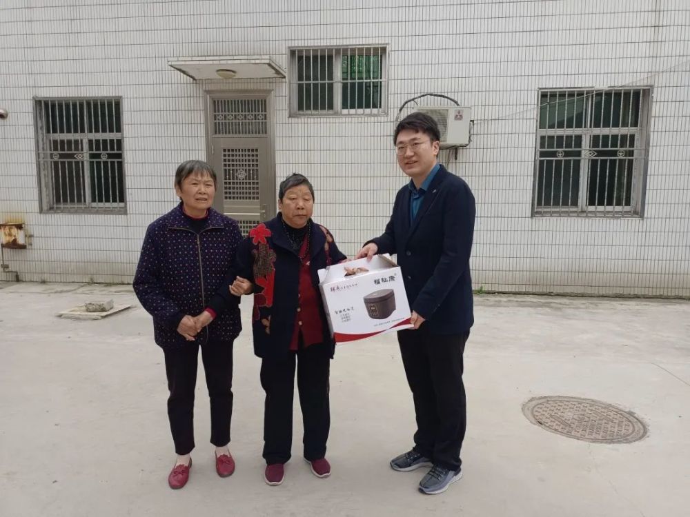 11月11日上午,新治村民政协理员为村两名残疾人送上由新坝镇残联与华康药店赠送的智能语音电饭煲,并询问他们目前生活和身体状况,叮嘱他们保重身体。(郭正伟)