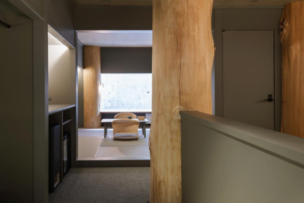 地下室的“The Roots of Nara”则选用奈良当地建筑材料,在房内矗立吉野杉木,再现奈良吉野的山景,极具野趣。