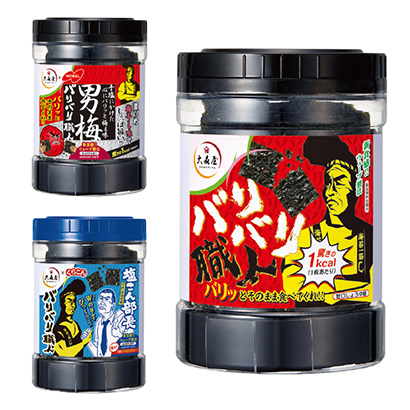 这是一款即食海苔零食。不是印象中那种薄脆的口感,它的差异之处在于其硬脆的口感,吃起来像仙贝一样的。日语中用来形容吃到硬脆食物的拟声词是“バリバリ”,因此这款海苔把バリバリ作为名字的一部分。由于有趣的名字和引人瞩目的夸张包装,这个海苔在日本非常受欢迎,2018年以来的3年内获得6亿日元的销售额,去年销售额更是前年的3倍。