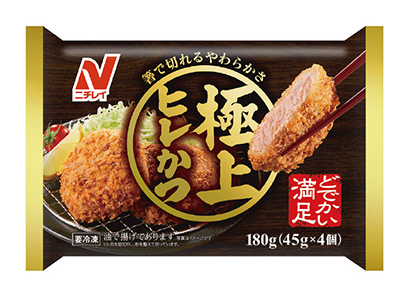 这是日冷食品去年推出的新品冷冻炸猪排,拥有专业炸猪排的精髓:筷子一夹就可以切开的柔软质地、丰富的肉汁和酥脆轻薄的面衣。由于再现了猪排专门店的味道,在去年3月一经发售就成为日本冷冻猪排类目的销量第一。
