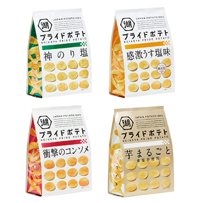 湖池屋的这款知名的薯片在去年作了升级,发售后11个月实现销量4900万袋,同比增长70%。共有神奇海苔盐(添加了3种海苔)、感激薄盐(添加了3种盐)、冲击的肉汤和无盐原味四种口味。