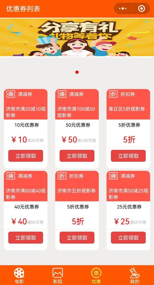 20-10,80-40,100-50……超大力度优惠,瞬间实现电影票自由!