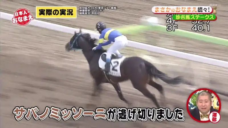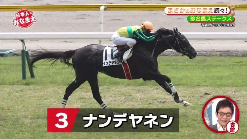 日本NHK电视台的综艺节目「日本人のおなまえ」是一档专门研究各种各样名字的节目。最近节目就聚焦赛马界,制作了一集关于奇葩马名的专题报导……