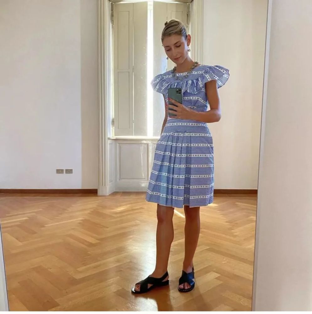 Jenny Walton的搭配总是让你能够看到一点点赫本的影子。可爱的荷叶边裙、摩登现代的凉鞋,还有帅气的衬衫和很有态度的半身裙..这两套搭配都是经典中带着一点点复古。