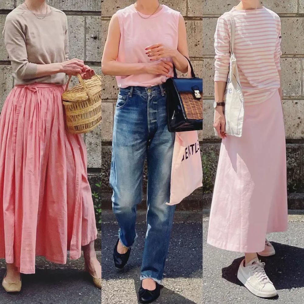 博主cannaria上周的搭配以樱花粉这个颜色为主,而且都加入了她个人喜好的单品比如半身长裙,条纹衫,都是温柔典雅的造型,适合走优雅、温柔路线的女性。