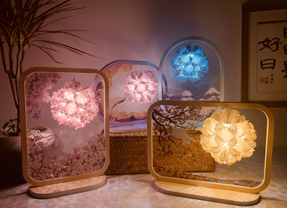 放松或者闲余时刻,打开纸艺灯的灯光,不管是对着灯拍拍照还是安静的看着坐一会,都让自己一天的疲惫消失了大半。