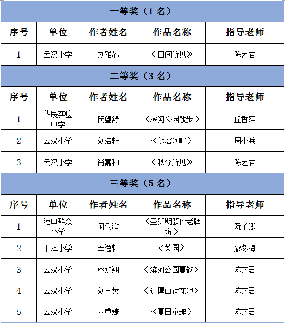 诗歌作品获奖名单(青少年组)