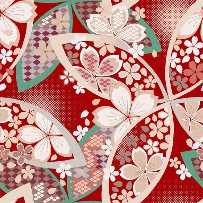 樱花的华贵美丽和散落时的孑然与日本人的美学息息相通,因此也就衍生出了各式各样的樱花花纹。