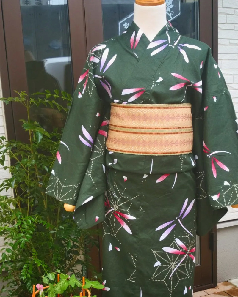 蜻蜓还喜欢停留在物品的头部,所以也代表了出人头地的意思。江户时代以后,蜻蜓逐渐成普通和服上的图案。