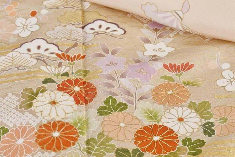 菊花在和服上也是很常见的。菊花原产于中国,大约在奈良时期作为药草传到日本。在日本,菊花也有“不老”和“长寿”的含义,是非常吉利的花。