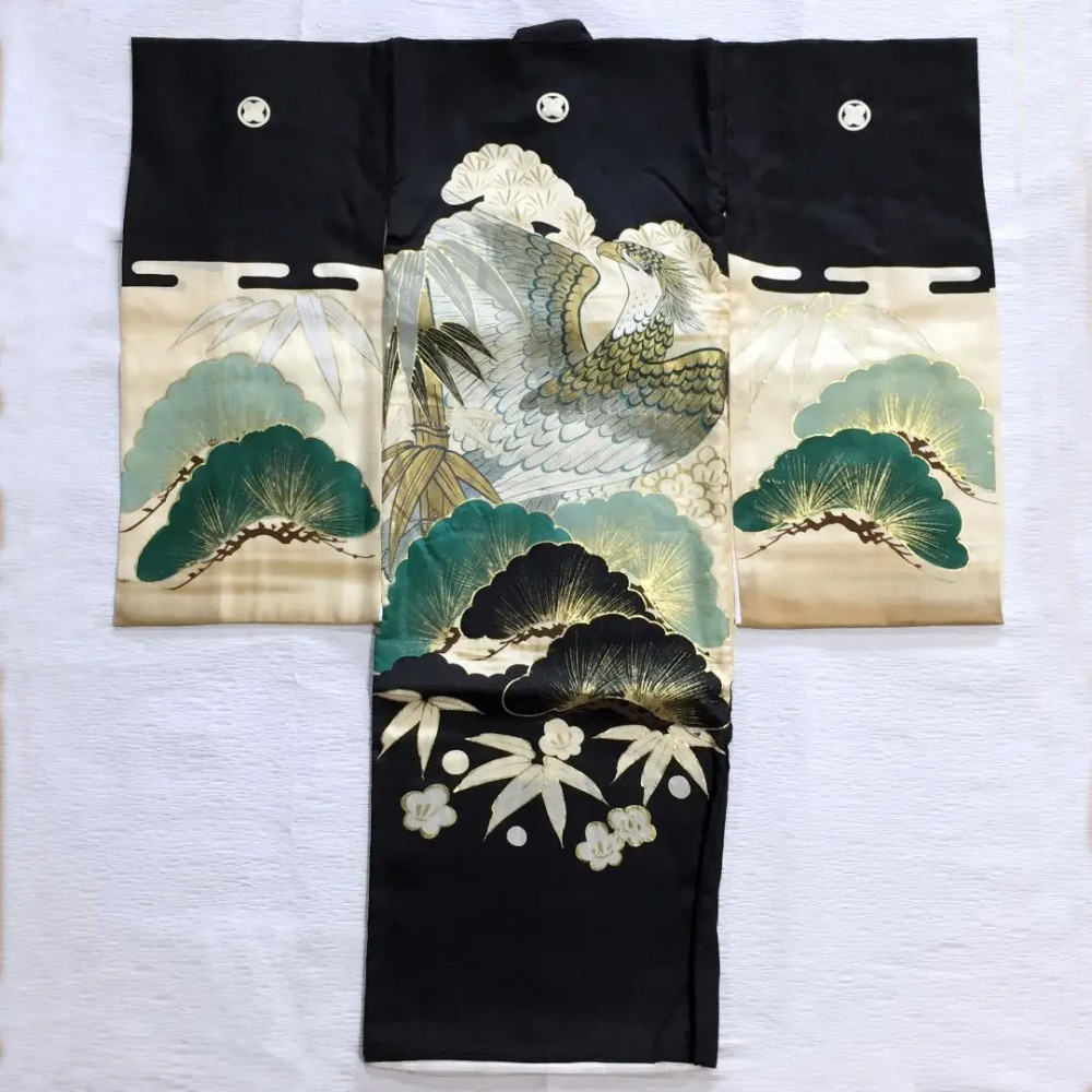 鹤在和服上一般会有两种,一种是写实的鹤的图案,另外一种是由鹤变化而来的鹤纹,相比写实的鹤,鹤纹更常见。
