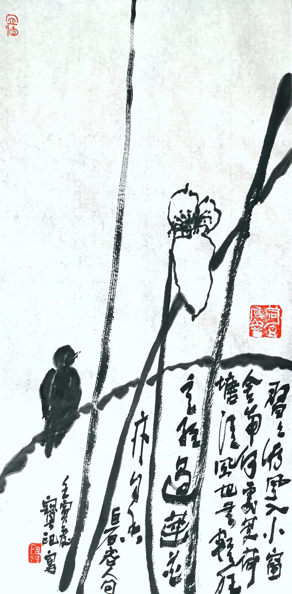 宝印前几天和我说,最近他准备发一些作品,让我给他写一点文字,是关于他作品的一些看法,于是我便不假思索的答应了,可过后一想,又觉得自己应承的有些草率。 一是自己不擅长文字,久不动笔写一点东西十分困难,挖空心思浪费好多稿纸,也依旧是写不出来。而是要在别人作品面前说话,是一件很不容易的事情,近乎夸张和过分谨恭,都不是自己的真实表达,也不能领读者信服。 说到画家,我便心头一紧,不知道从何说起,宋庄画家早已是堆积如山,泛滥成灾了,说“画家”并不是一个令人荣耀羡慕的职业,甚至有点寒碜。你只有到了宋庄以外的地方,也许能赢得一点别人发自内心真诚的尊重。大部分画家都在用力的、拼命地活着,一些有生存优越感的画家也都在自己“饥饿性格”的作用下不择手段地追逐名利,其实并没有多少真正的艺术可言。 这些姑且不去说它,我与宝应相识两个年头,他是风子的高足,因此他叫我师叔,这使我们的关系亲近了不少,他是我在风子的众多弟子当中见到唯一一个天赋异禀,修养全面,且书画印俱佳的青年艺术家。在风子最后的一段日子里,他侍奉左右,聆听教诲,他的勤勉和对艺术的见解也多令风子赞赏。 宝印起初是对风子的崇拜,并无走这条路的主观愿望,后来在追随风子的日子里,他耳濡目染,加之风子的言传身教和独到见解,逐渐激发了宝印久蛰的心灵。他一超直入的顿悟似火焰喷薄而出,光芒万丈,犹如拨云见日,晴空万里,从此他睁开了迷茫的双眼,看到了更高、更远更广阔的天空。在水墨的光影里喜愁哀乐,都化作一幅幅令人称奇的画图,在缤纷的色彩中,在有情的世界里最终安放了他那漂泊的灵魂。 宝印下笔颇有乃师风范,无论山水花鸟还是书法篆刻,用笔具痛快淋漓,恣意纵横,如惊风聚雨而气势如虹,其可贵之处并非一味霸悍,而是一种“大风起兮云飞扬”和鸣着一腔“二十四桥明月夜”般地低吟浅唱,读之令人拍案叫绝! 不信你看宝印用那如椽阔笔写出那轻盈可爱的山花野卉,是多么地楚楚动人啊。那种:“苔花如米小,也学牡丹开”的昂扬与自信,也正是他内心的真实写照! 宝印入道甚晚却收获颇丰,令业界赞赏,着实难能可贵。这仿佛是上天为了要挽救一个曾经有着执着信仰且极具才华的人免于流入颓废的护佑,在他那背后的帷幕中隐藏着的神通又在那里栩栩的生动,显示他的博大与精微。他的方向是对的,他的每一步都是坚实而有力的! 我真切地希望我们这个时代能给青年的艺术家一个复活的机会,使他们能够真诚地生活、真诚对待艺术,走进自己的心灵深处,而不再去简单地为了能吃上一口饱饭每天画一些没有意义的作品,也不要去为了一个展览去加入一个什么会员,把自己艺术的热情消耗殆尽,在榨干你全部的精血之后遭人吐弃,啥也不是。 你们不能说我有过多的责备,我觉得自己已经声嘶力竭,肝肠寸断了,但我依然故我,不肯低头。你不要告诉我,这是一个什么时代,也不要告诉我那些没呼唤和传递正能量的人们,其实他们的下半身还浸泡在污浊的泥水里而内心却浑然不知。我知道,我们无奈地接受了在那“喜绿不喜红”的日子里依然岁月静好,殊不知还有多少社会最底层人们为了最基本的生存在痛苦哀嚎!大多数画家的生存状态不是一个二舅,就是把他那几个舅都加起来,也治愈不了他们的精神内耗。