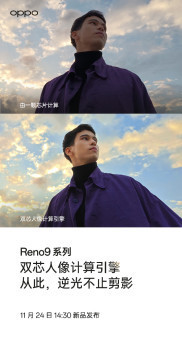 近日,OPPO正式官宣OPPO?Reno9系列将于11月24日发布,随后陆续公布了外观等信息。而最新消息显示,OPPO官方释出多组人像对比样张,同时公布了影像相关的硬件配置,让大众感受到了OPPO?Reno9系列双芯人像计算引擎的强劲实力。