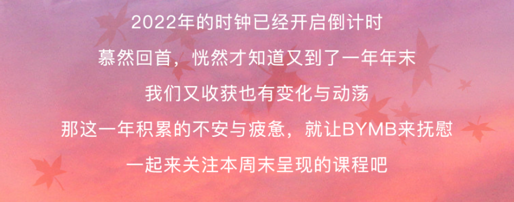 这个感恩节日季,BYMB众多明星导师汇聚一堂。2022年年末,不妨用一场瑜伽完成今年的仪式感,唤活身心!