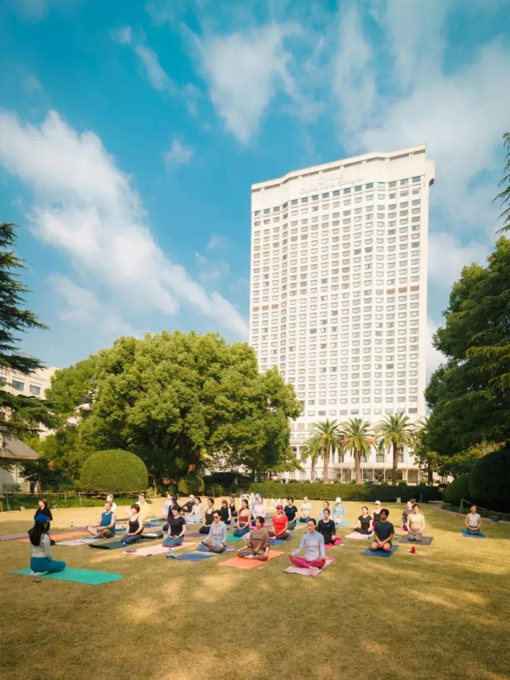 上海浦东文华东方酒店前300平方米左右的葱郁草坪,是瑜伽健身的绝佳场地。资深瑜伽老师牛牛将宠物瑜伽DOGA也带到了这里,快带着你家爱宠操练起来吧。