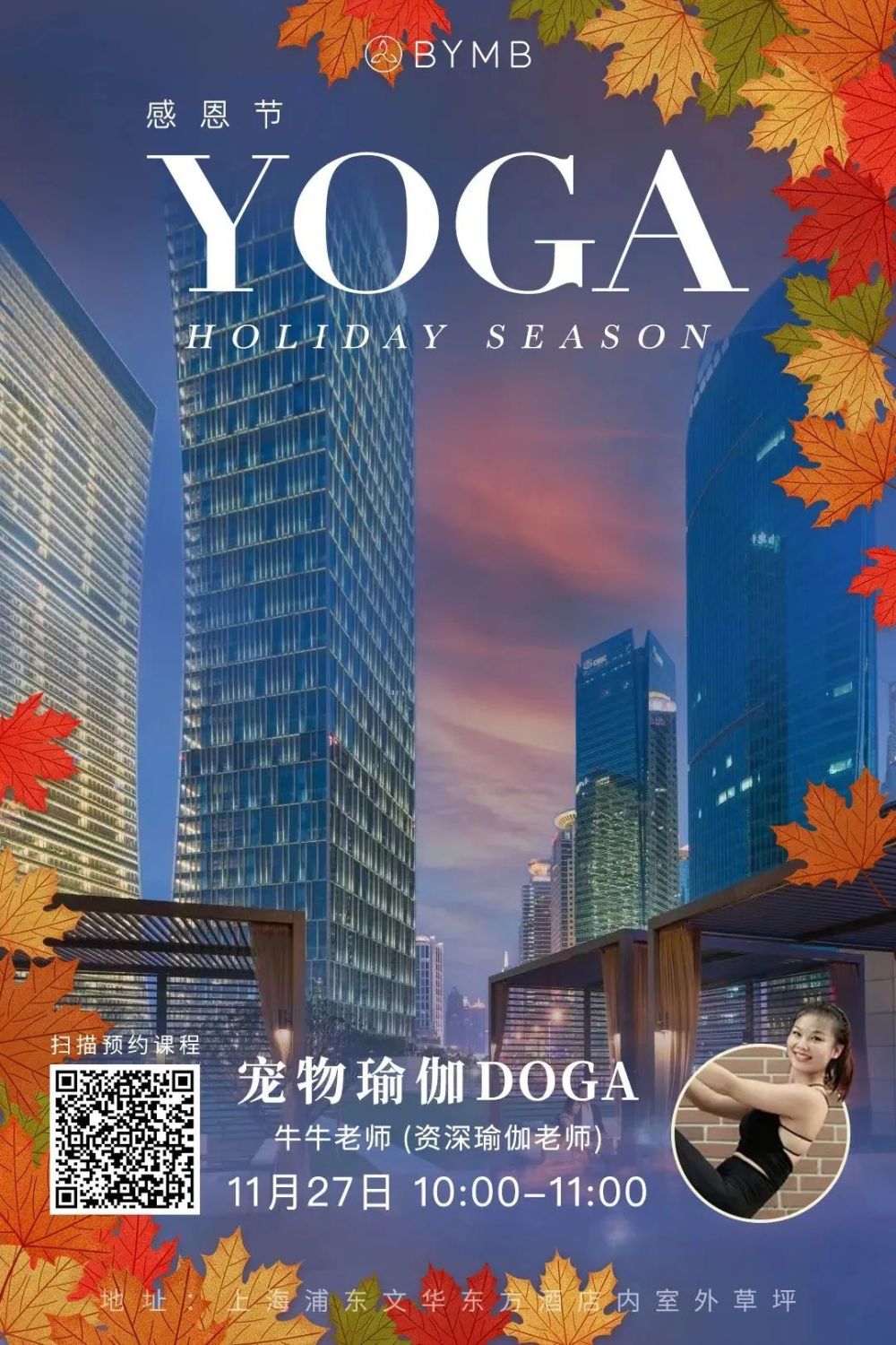 在本次活动中,曾多次前往印度、尼泊尔等地深造的资深瑜伽老师牛牛,将带来新兴的运动形式——和宠物一起瑜伽的DOGA课程。课程有助于加深主人与宠物的感情,同时缓解人和宠物的焦虑。和爱宠一起感受秋日瑜伽疗愈的过程,想想就足够美好!