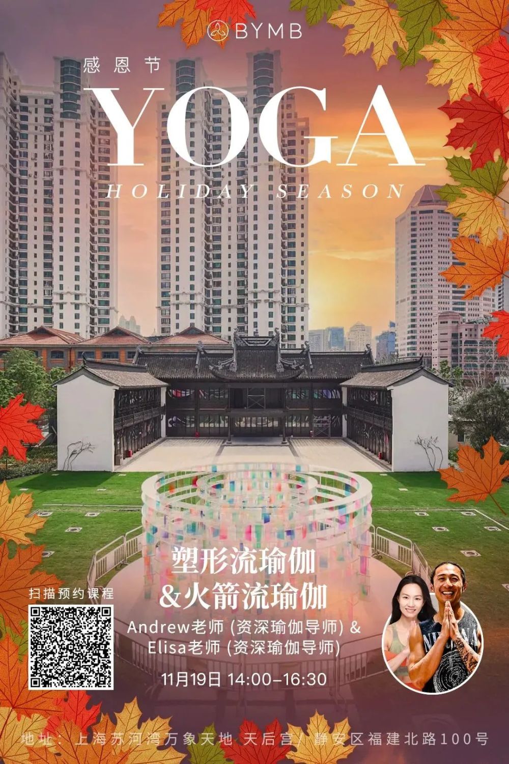 在这个历史底蕴丰富的百年古建中,资深瑜伽导师Andrew与Elisa将分别带来一节塑形流瑜伽与一节火箭流瑜伽课程。
