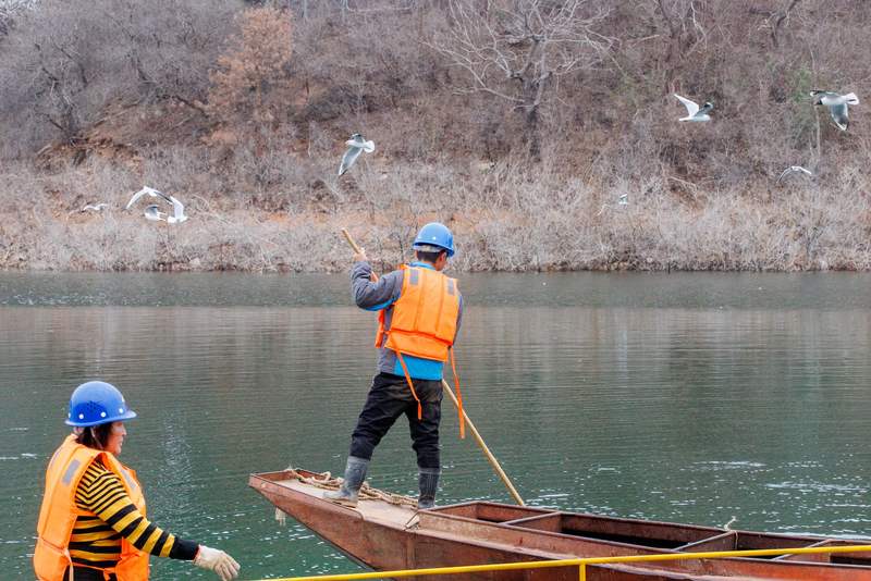 4月3日,密云水库的增殖放流现场,工作人员清理损耗鱼苗,保持水源洁净。