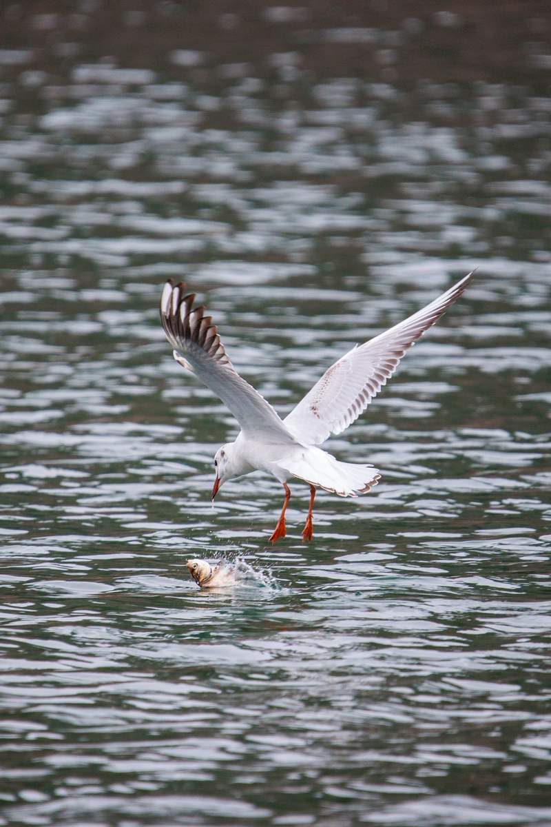 4月3日,淡水鸥在增殖放流区域附近觅食。