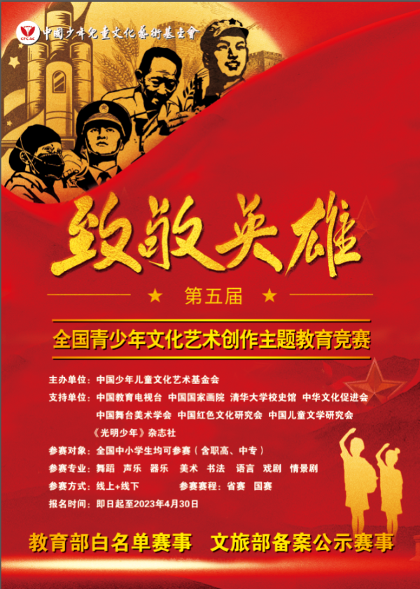 据介绍,第五届“致敬英雄”全国青少年文化艺术创作主题教育竞赛是经教育部批准、文旅部备案的白名单赛事,由中国少年儿童文化艺术基金会主办,赛事旨在引导广大青少年追寻红色记忆,弘扬英雄精神,赓续红色血脉,厚植爱党、爱国、爱社会主义的情感。武汉地区赛事由长江日报报业集团承办,赛事将在5月、6月全面展开,武汉地区的优胜者将进入全国总决赛。同时,一直致力于青少年艺术教育的长江日报也将在此项赛事中发掘“未来大师”,储备艺术后备力量。