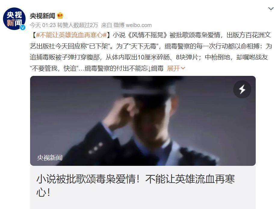 前两天,一部缉毒言情小说《风情不摇晃》上了热搜,被公开批评。