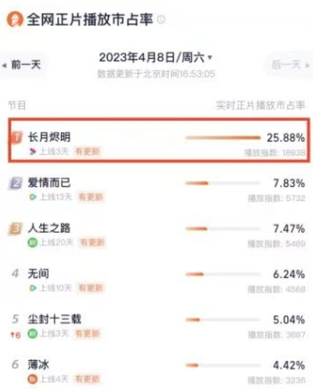 从目前的情况上看,《长月烬明》的热度和关注度都很不错,根据官方数据显示,《长月烬明》上线29小时热度破万,直接刷新优酷剧集热度值破万记录,同时刷新优酷移动端观看人数等首播记录,这部剧的全网正片播放市占率直接冲到第一。