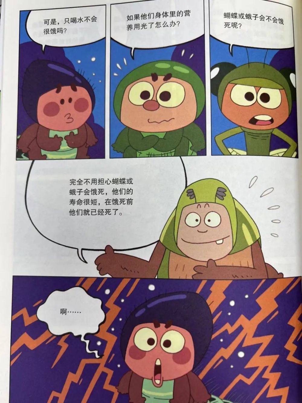 比如大家在担心蝴蝶、蛾子不吃东西,饿死了怎么办的时候?“适时”科普一下:不用担心,他们的寿命很短,饿死前就已经挂了......当时看的时候,的确有下方图里那种,内心五马奔腾的感觉。