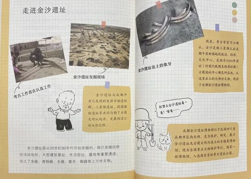 虽然古蜀国仅存在于目前的传说故事中,而近百年,三星堆、金沙遗址的发现与发掘,让他们与古蜀文明的发展逐渐清晰起来。这套书的另外两本就专门给孩子们讲解了关于古蜀国和金沙遗址的故事。读完这三本,整个脉络会清晰很多。