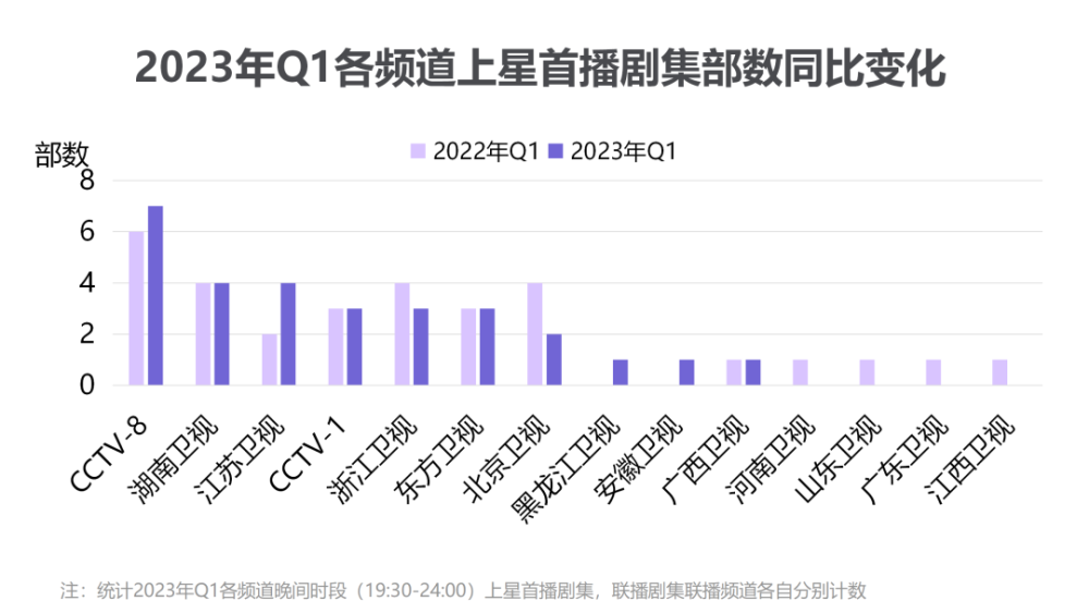 Q1上星剧集部数、集数持续下降,多轮上星现象明显。