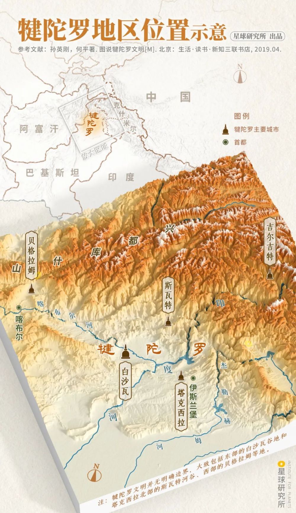 (犍陀罗相传最早为古印度十六列国之一,后为波斯帝国行省,之后被贵霜统治,制图@陈景逸/星球研究所)