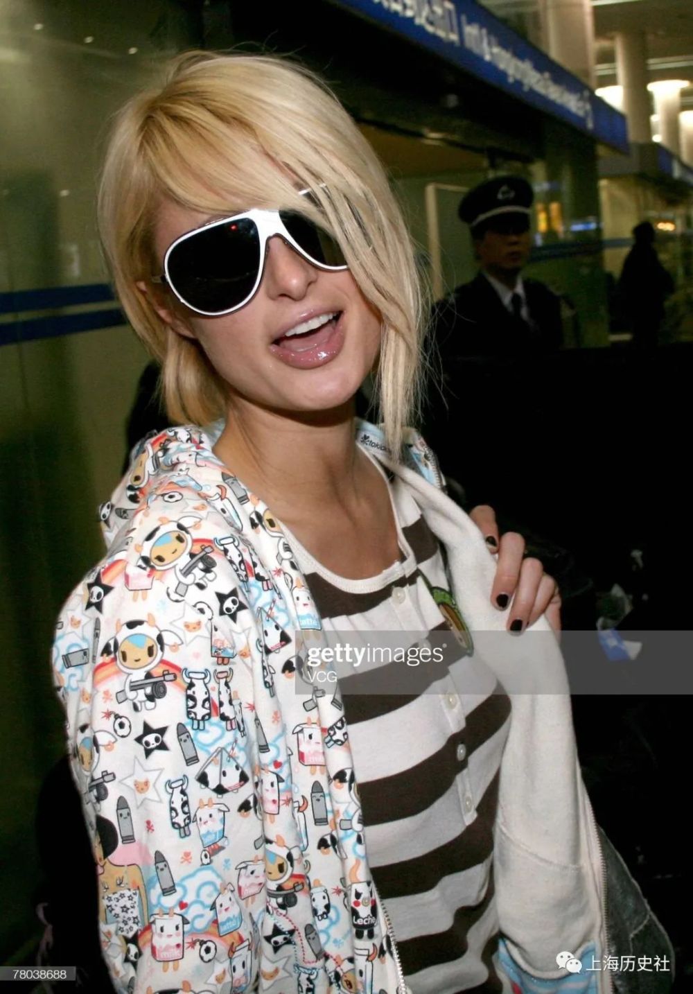 原本应当在晚上6时半就抵达上海的帕丽斯,却在8时的时候才款款出现在到达出口。当天她以一头剪短了的金发和一身低调的休闲运动装亮相,一副金边蛤蟆镜更是由始至终都没有摘下过,如此保守的装扮让在机场足足守候了几个钟头的记者们非常失望。不过这位“话题女王”还是不放过任何能上新闻的机会,在行李提取区里好好补了把妆的她,还在机场通道里的时候就已经迫不及待摆出各种POSE让记者们照相。