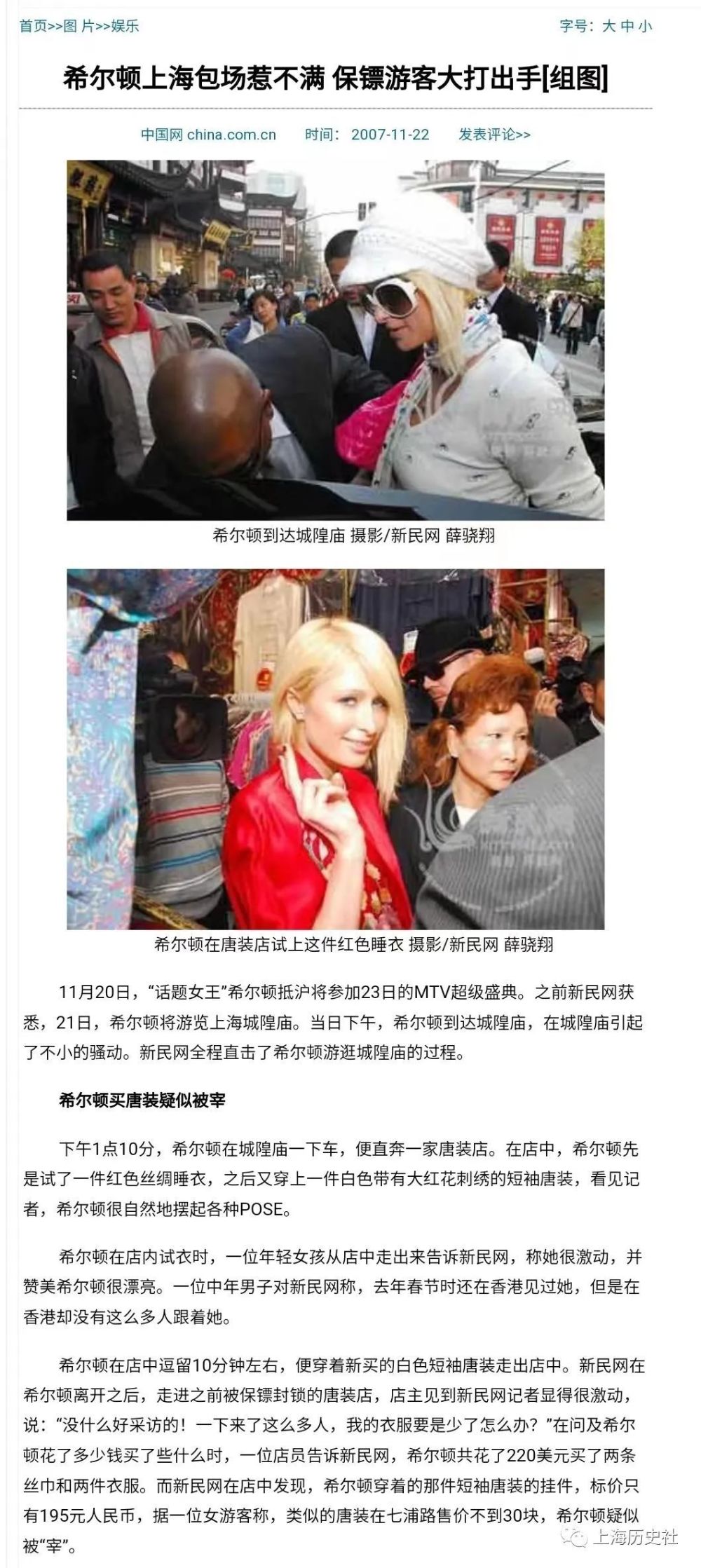手机访问:wap.265xx.com2007年11月20日~24日,美国名媛帕丽斯·希尔顿首次上海之行(上集)