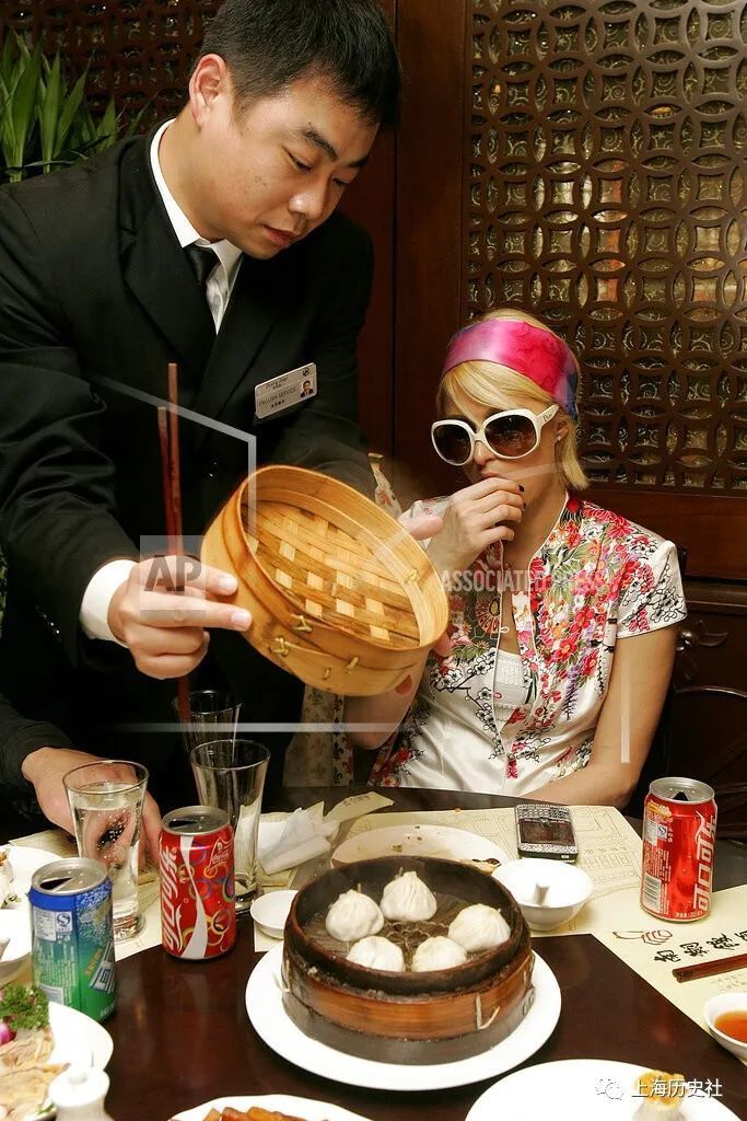 U.S. socialite Paris Hilton tries out Xiaolongbao or Juicy steamed buns, the most famous Shanghainese cuisine, at Nanxiang Mantou Dian Wednesday Nov. 21, 2007, in Shanghai, China. Hilton is in Shanghai to attend the 2007 MTV Style Gala to be held on Nov. 23, 2007, at the Shanghai Grand Stage. (AP Photo/Eugene Hoshiko)