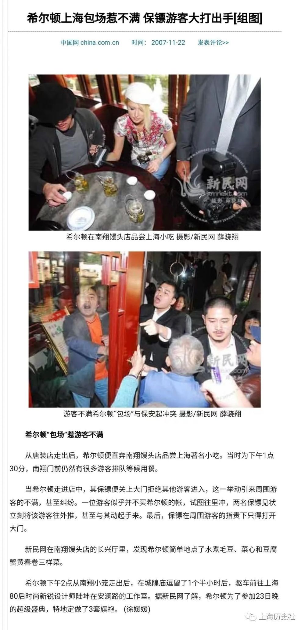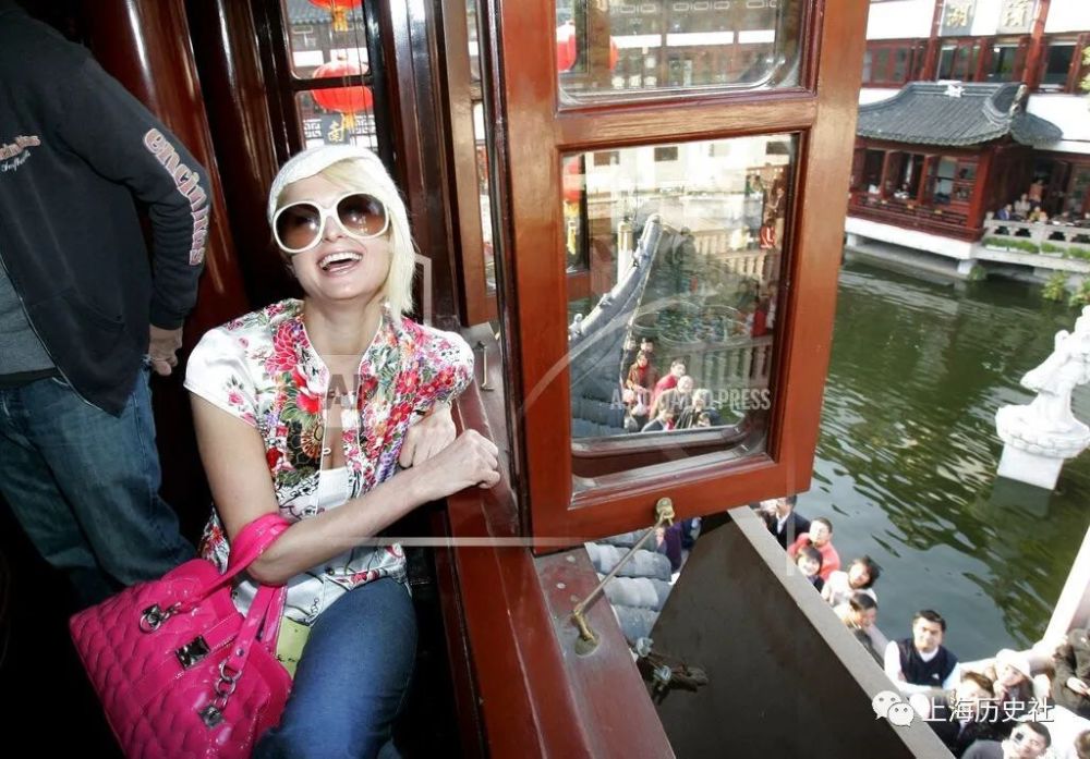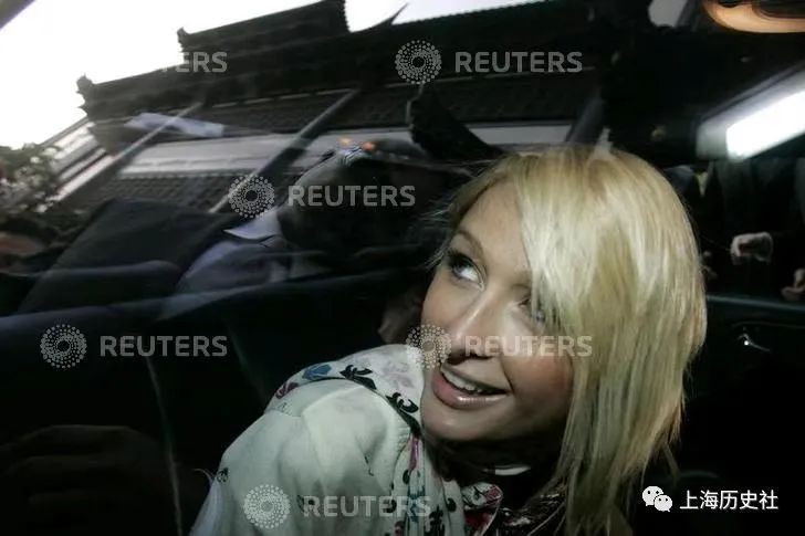 图10-11:13时10分,美国名媛帕丽斯·希尔顿乘车抵达豫园旅游商业区。
