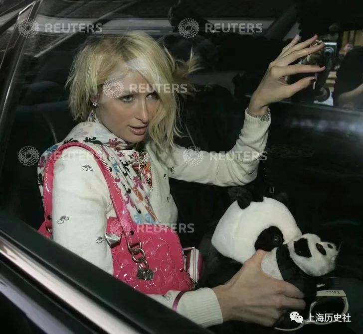 图64-68:下午3点半,帕丽斯·希尔顿拿着她购买的熊猫玩具乘坐专车前往上海80后时尚新锐设计师陆坤在安澜路的工作室选购服装。帕丽斯·希尔顿为了参加23日晚的超级盛典,特地定做了3套旗袍。