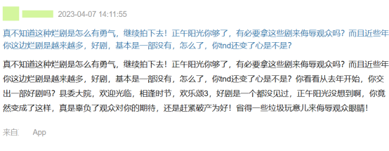 再看回到《欢乐颂4》,靠自己闯下的江山、吃自己的老本、毁自己的IP,观众都看不下去了还厚着脸皮拍,下一步还能走多远呢。