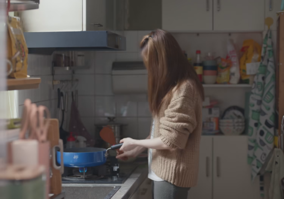 另一边,大早上开着没有半点声音的抽油烟机,煎着没有一点油烟的鸡蛋饼,何悯鸿披头散发、穿戴整齐撸个袖子在生疏地“做饭”。