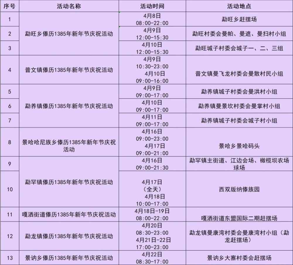 傣历1385年新年节:勐腊县各乡镇活动