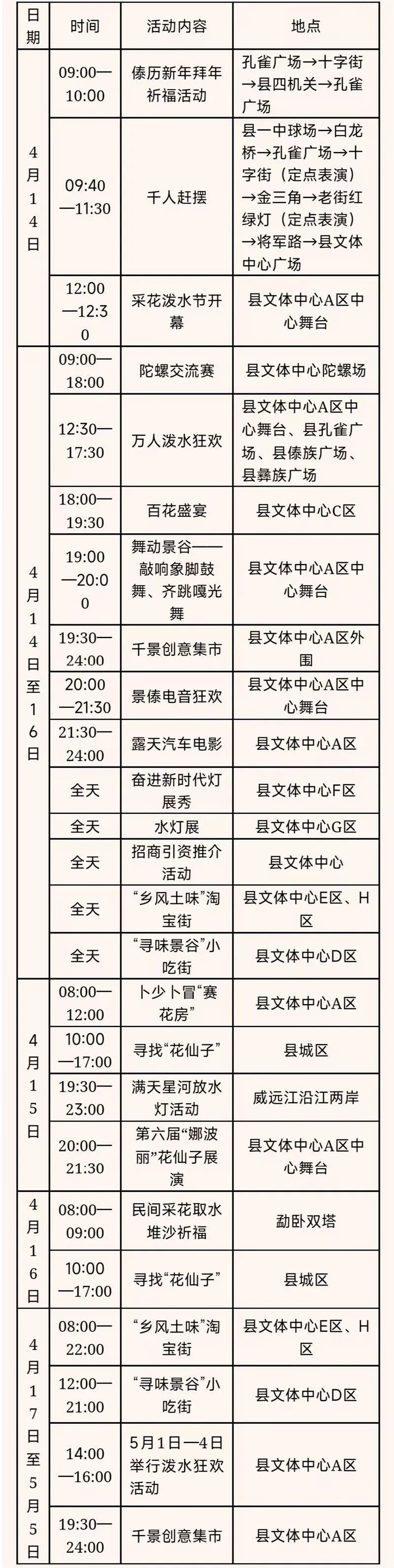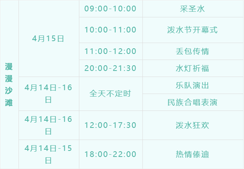 内 容:民间青年乐队演唱会,嘎伴光联欢、泼水狂欢