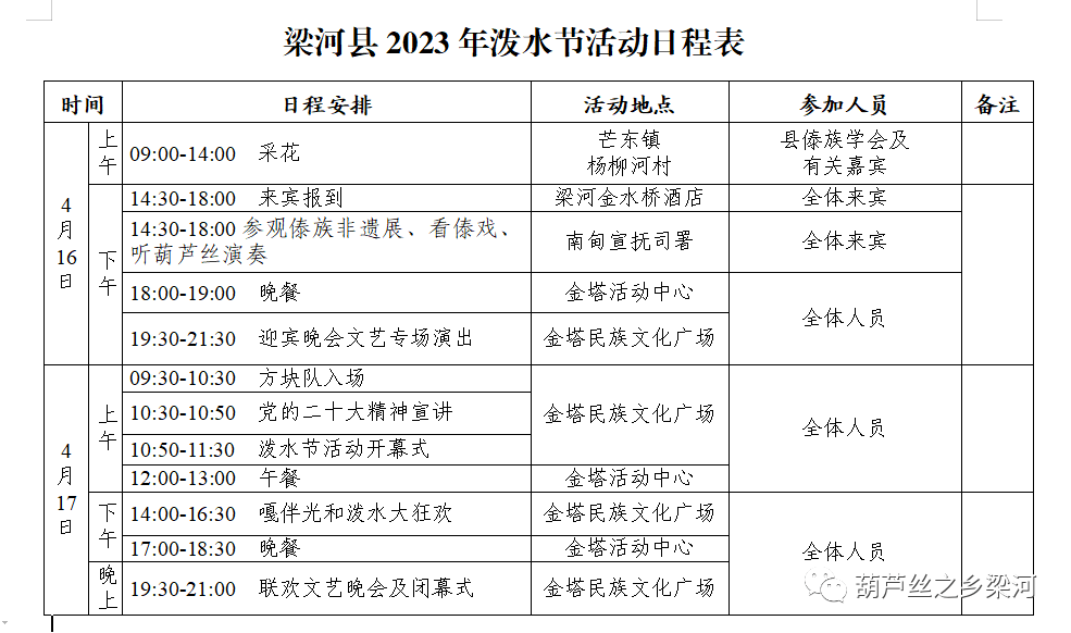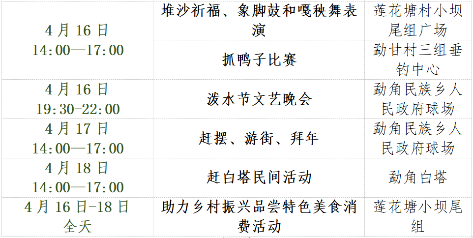 计划于4月12日至16日举办泼水节活动